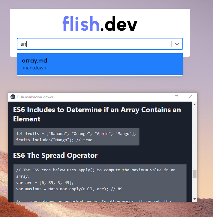 Flish has a built-in markdown reader. Put your files in a folder, and then get access to them from the menu. If you have any cheatsheet which use markdown, Flish can handle it.